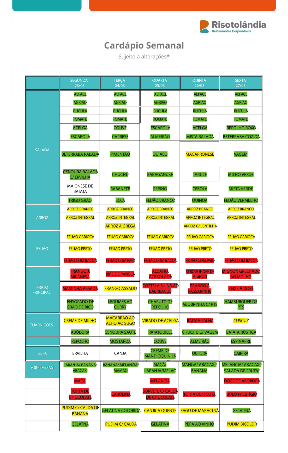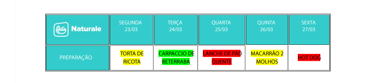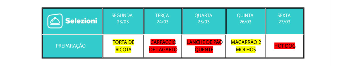 Veja aqui o cardápio dessa semana: